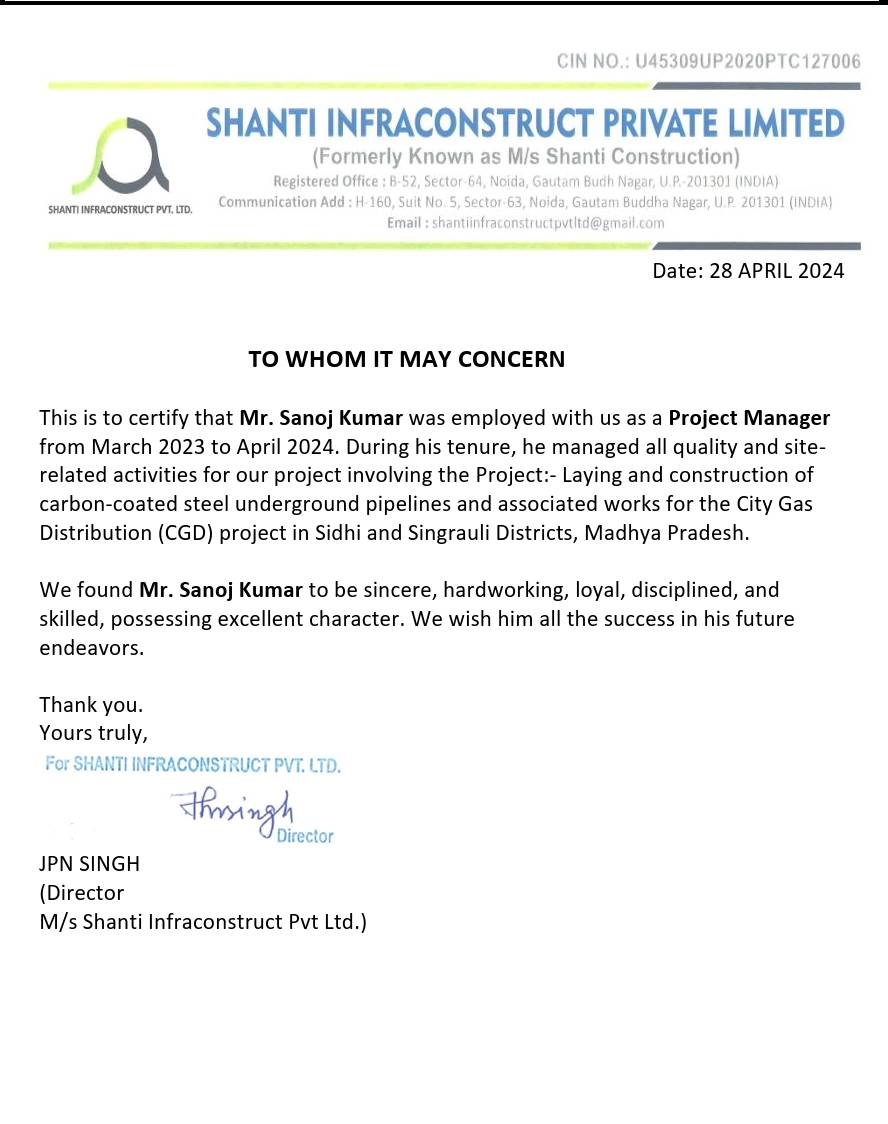 I am currently working as a Project Manager at M/s. Vectras Enprocon Limited.I have gained 15 years of experience in the Oil & Gas Pipeline construction field. My responsibilities include carrying out fabrication & and construction activities related to Pipeline and Piping, preparing all reports for final documentation, and managing Inspection, Production, Planning, Project Execution, Construction, Project Management, Team Management, Site Management, Site Monitoring, and Project Engineering. I possess strong communication skills for Planning, Installation, DRS, MRS pre- and post-hydro-testing, Quality Inspection, and pre-and Post Commissioning of Gas Pipelines. I am proficient in using MS Office tools like Word, Excel, PowerPoint & AutoCAD, and the Internet.