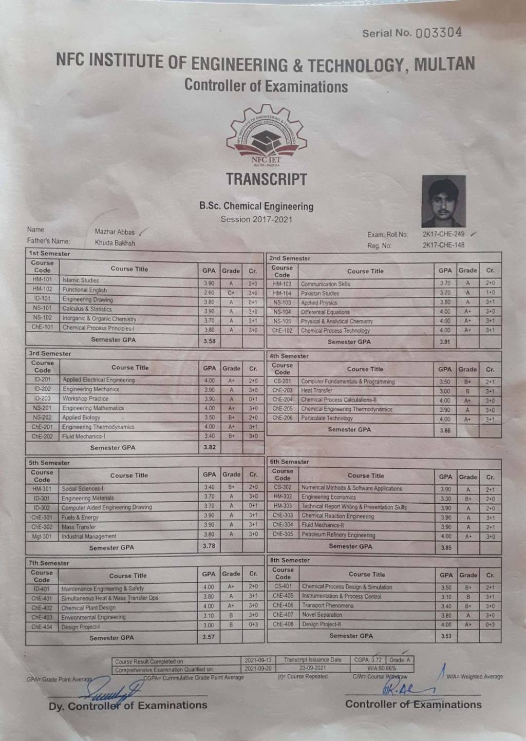 Highest Qualification: B.Sc Chemical Engineering